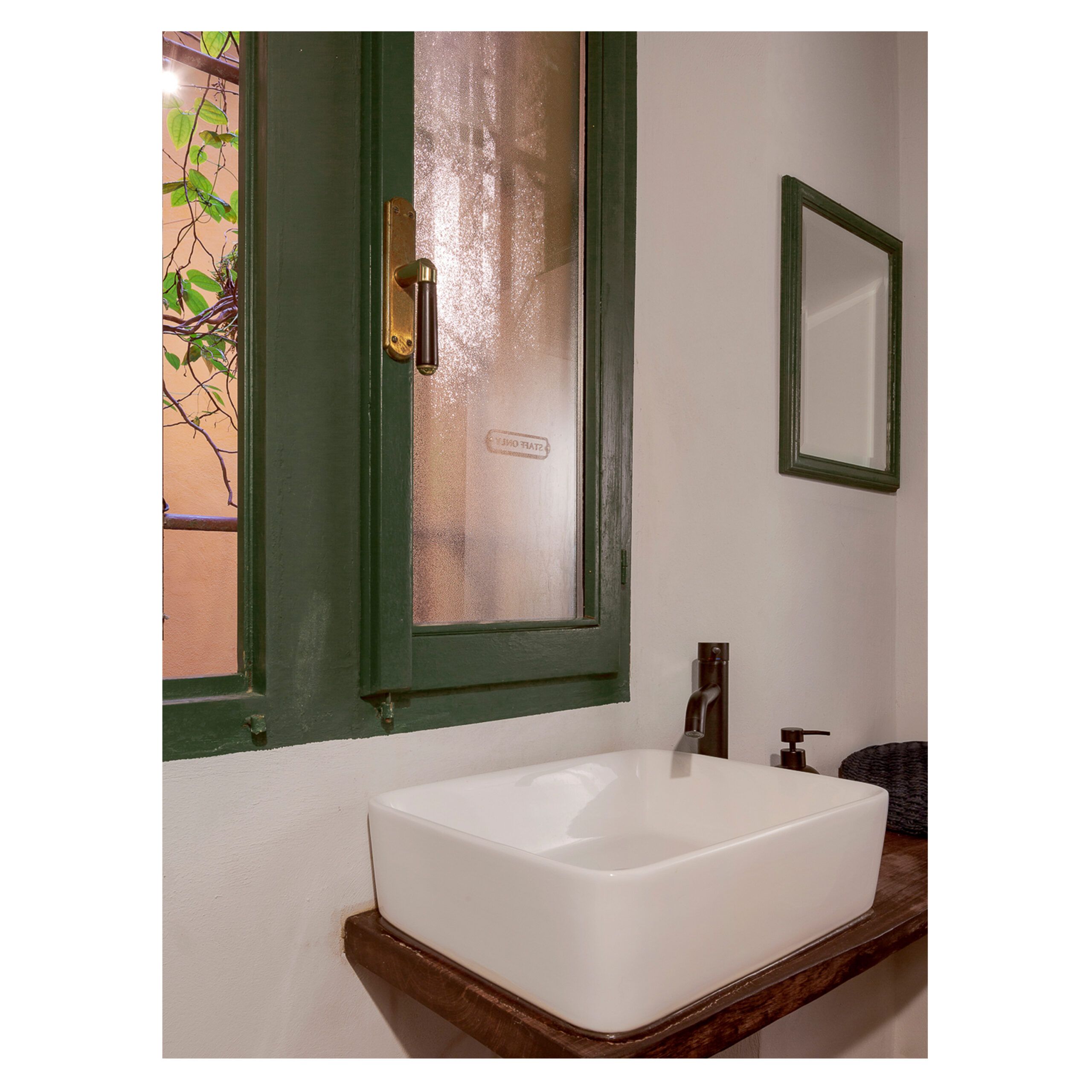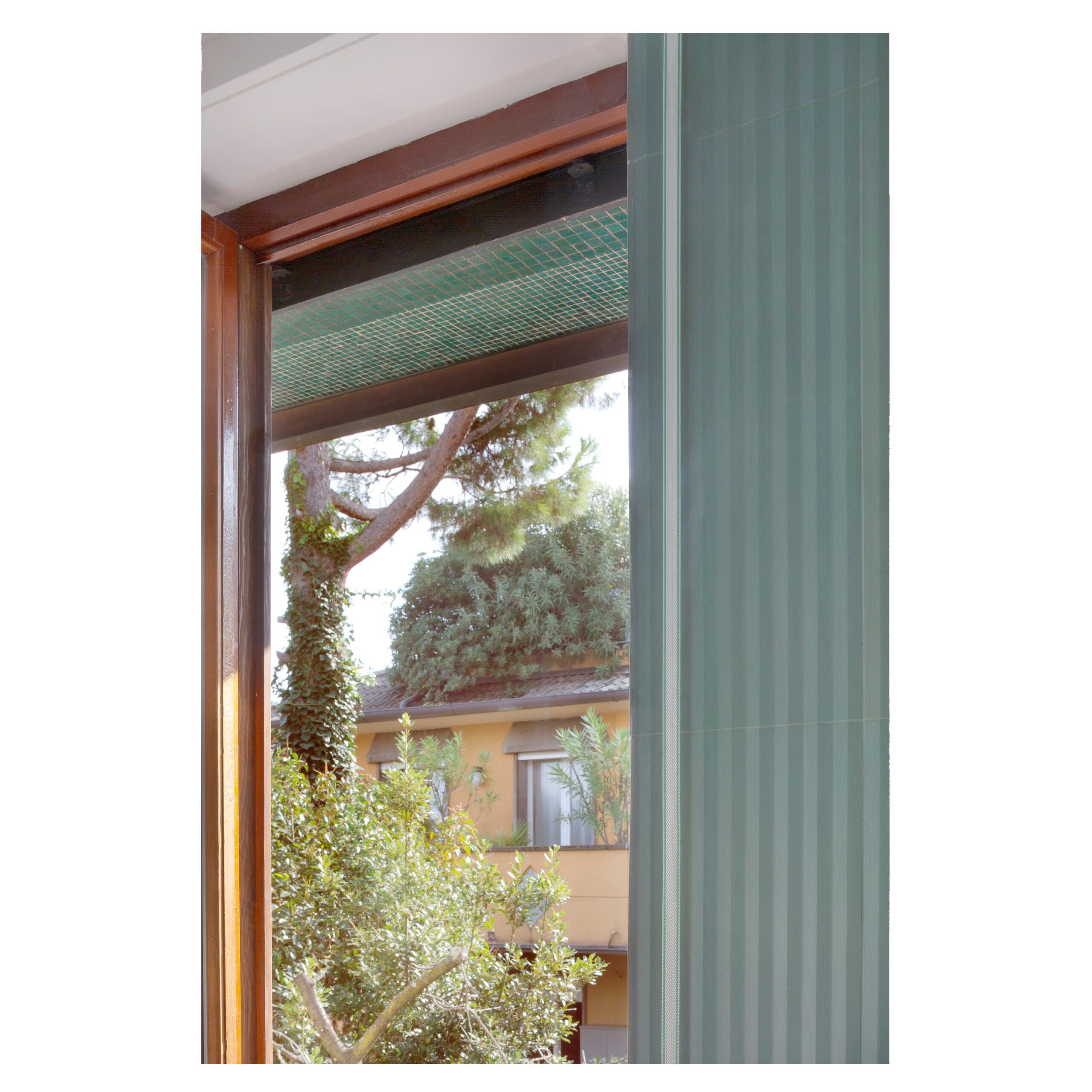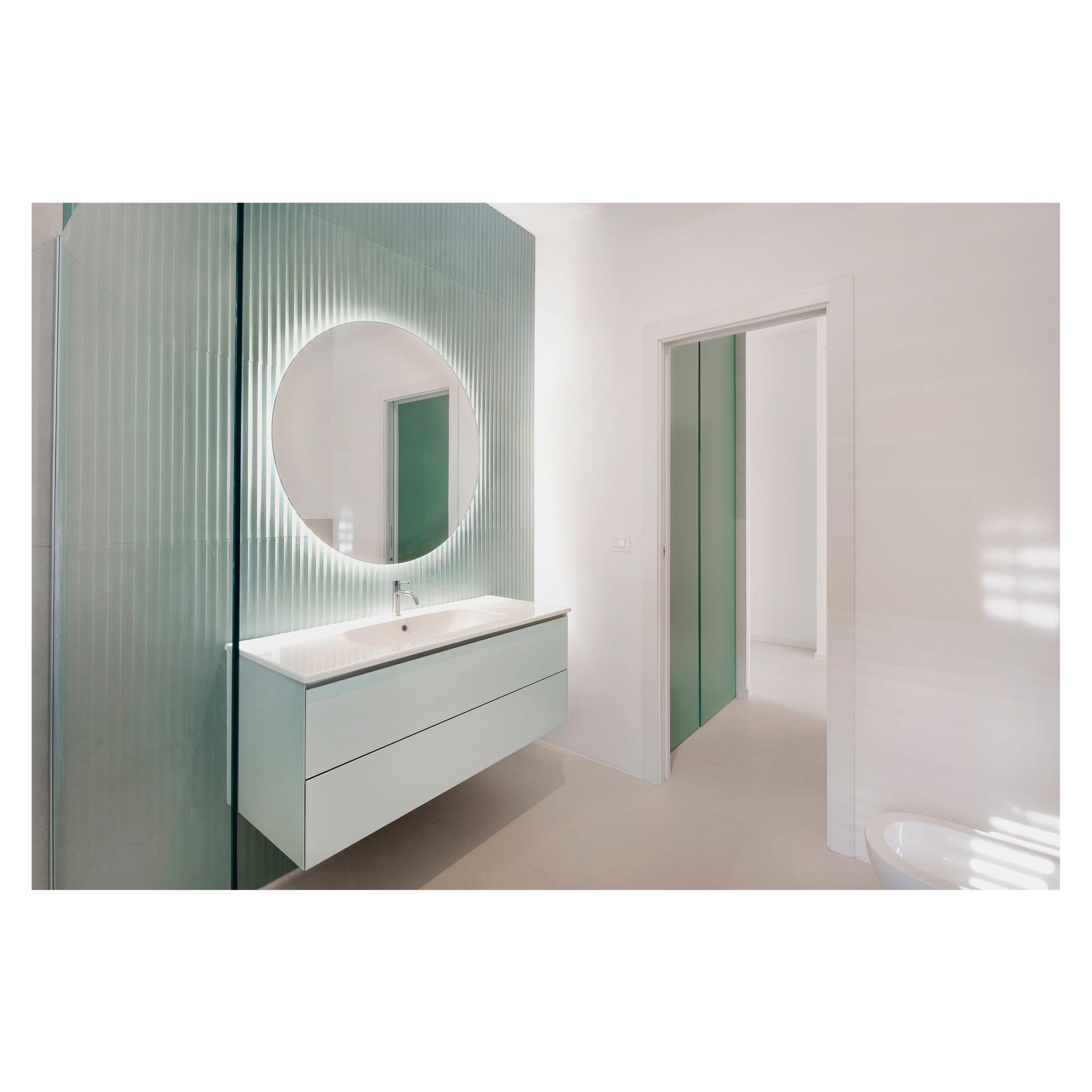 La zona lavanderia ed il bagno si caratterizzano come incursione “verde”. In questo caso, infatti, si designa la volontà di esprimere una vera e propria immissione nuova, senza rinunciare a rimandi cromatici con il passato del mosaico verde dei balconi. In una poetica di continui rimandi di fusioni e differenziazioni, ecco che le ante laccate verdi della lavanderia si uniscono con gradevolezza estetica al nuovo mobiletto in bagno ed il peculiare rivestimento in gres verde disegna una superficie continua e plissettata creando un abito elegante che si muove con la luce.