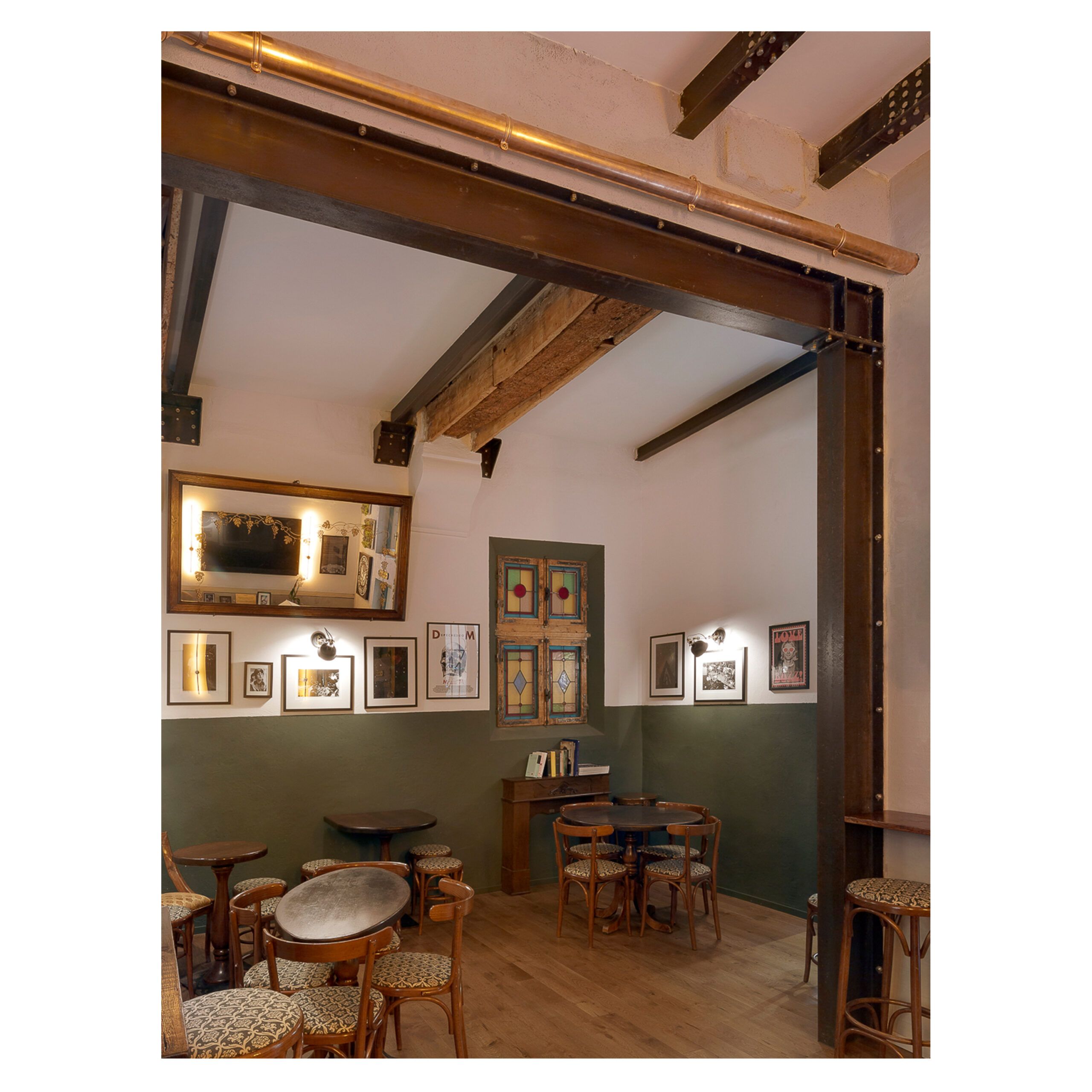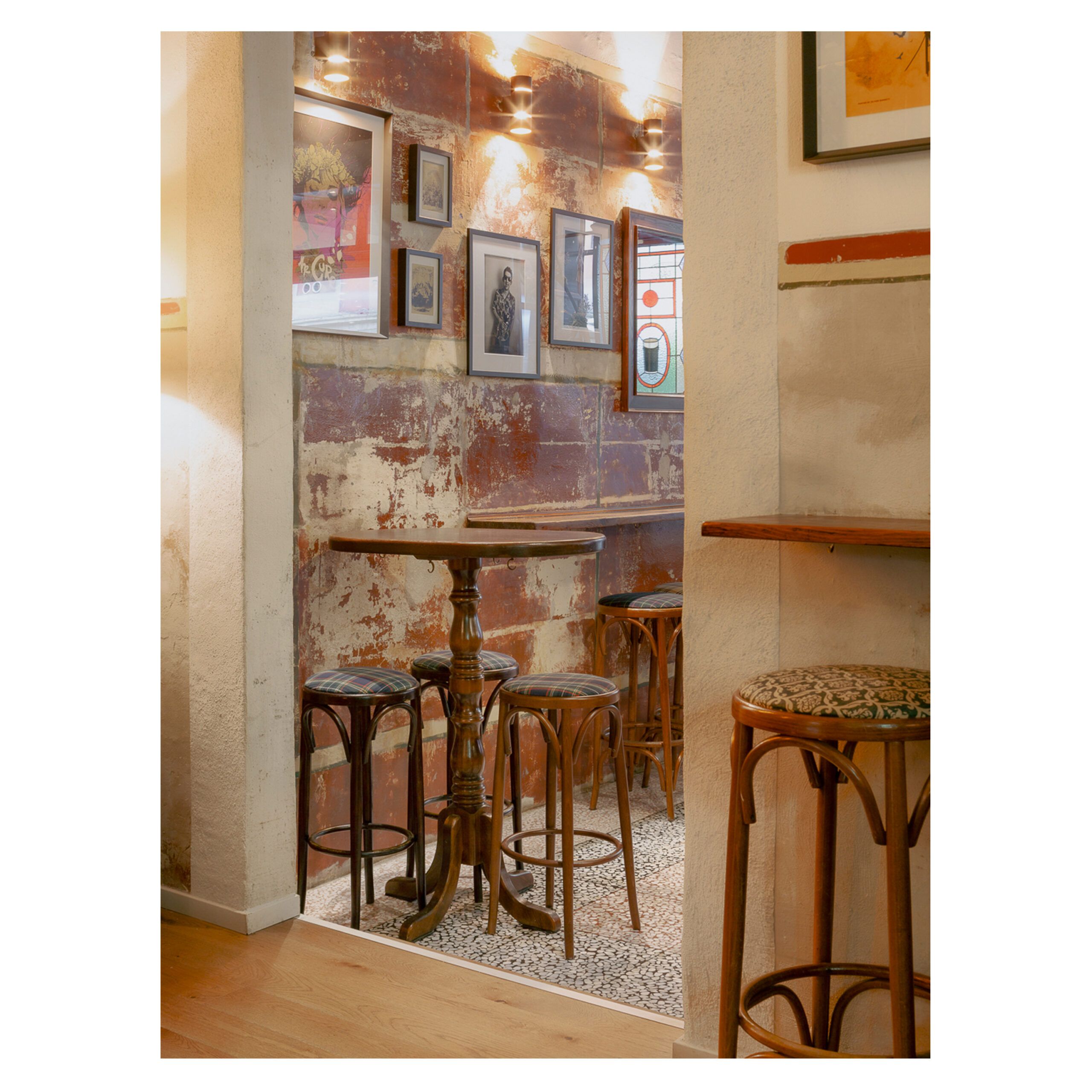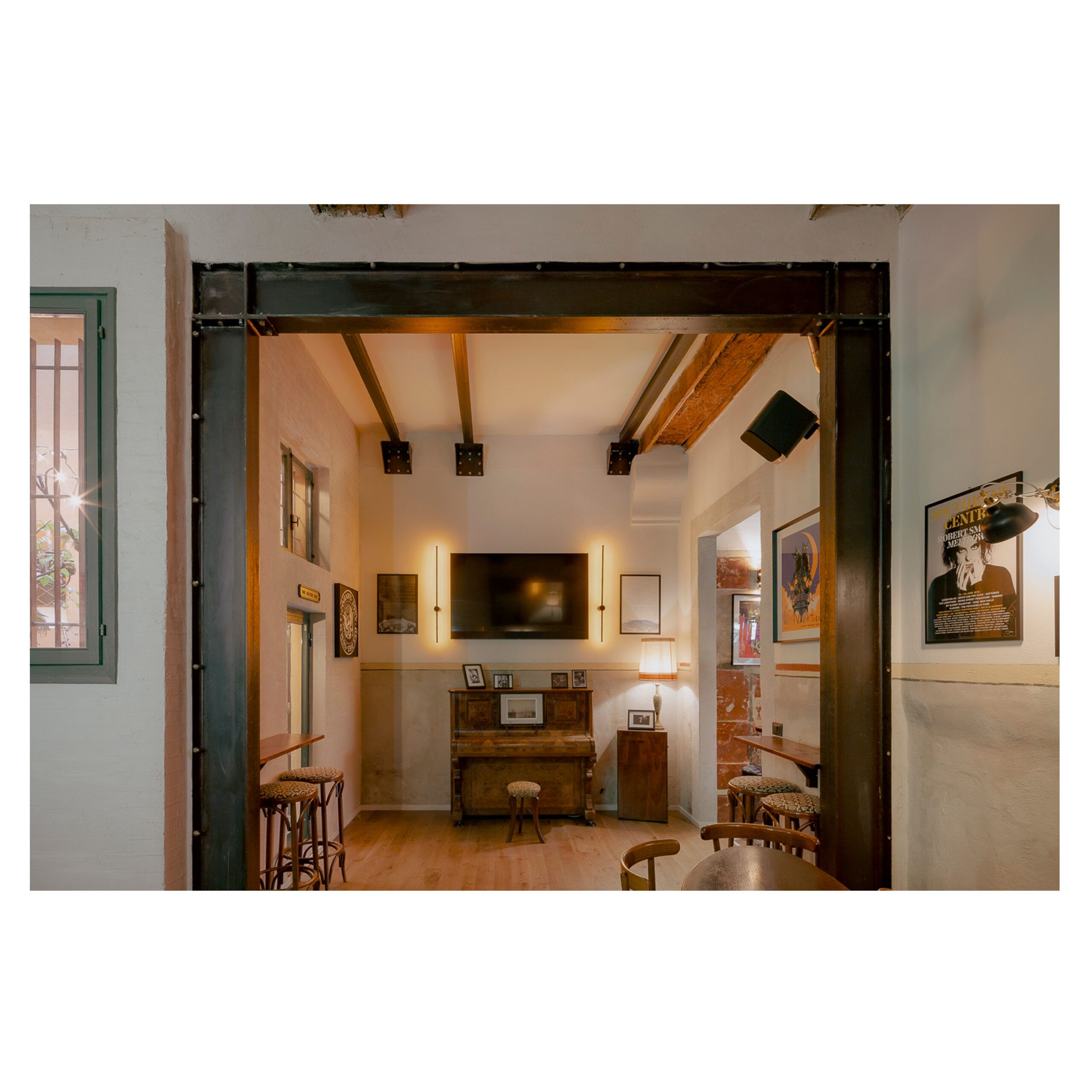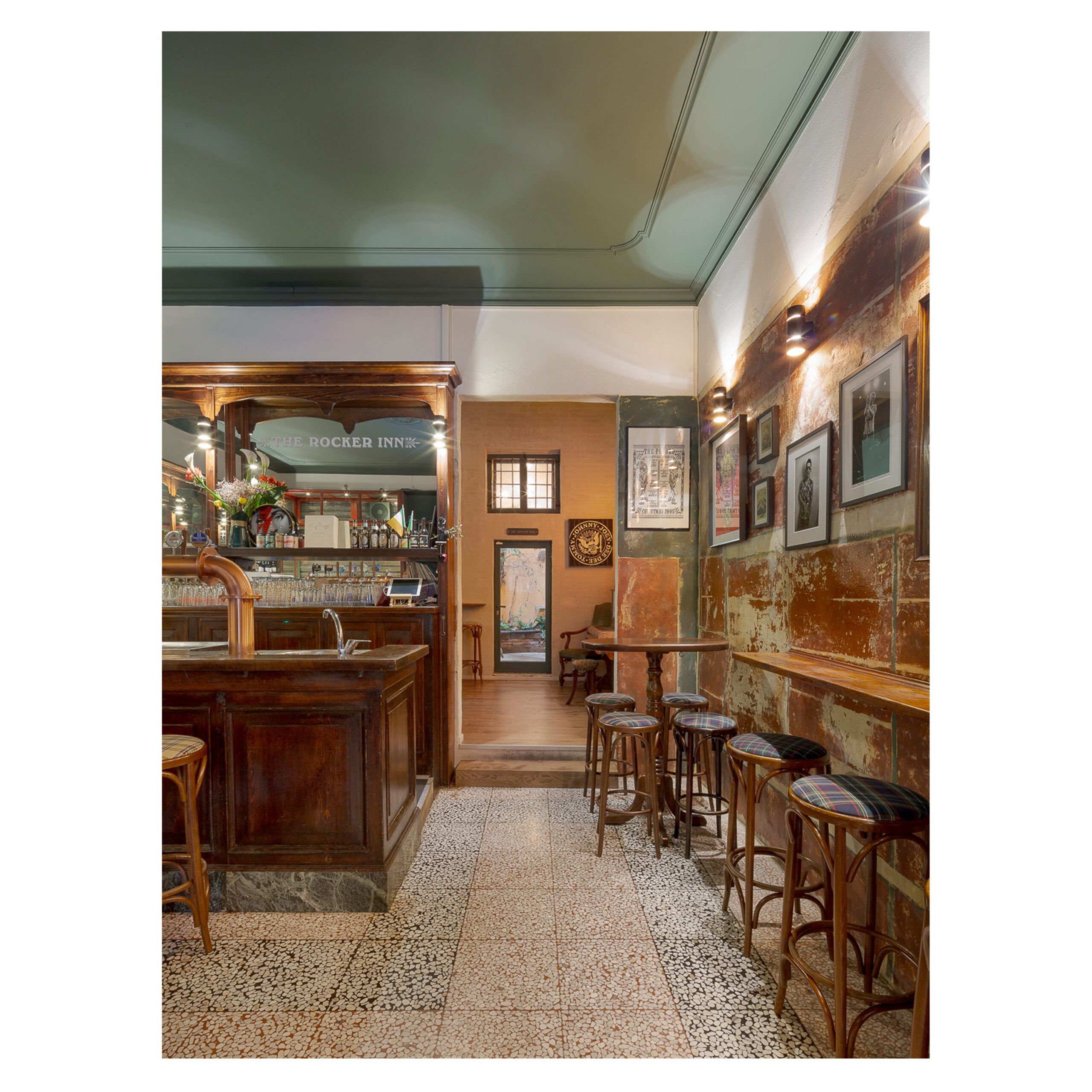 Incaricati dalla nuova gestione Estragon per dare corpo stilisticamente e matericamente a questa volontà di cambiamento, abbiamo iniziato un lavoro di sottrazione, ricerca e giustapposizione per poter dar vita a The Rocker Inn. Certamente il locale avrebbe potuto rimanere come era, ma se si cambia nome, identità e si vuole ottenere una nuova atmosfera, bisogna che anche l’aspetto cambi. Cambiare non significa, tuttavia cancellare il passato. Le ultime gestioni non erano riuscite a cogliere e valorizzare la ricchezza degli spazi storici e queste pareti piene di storia, erano ormai divenute solo vecchie.