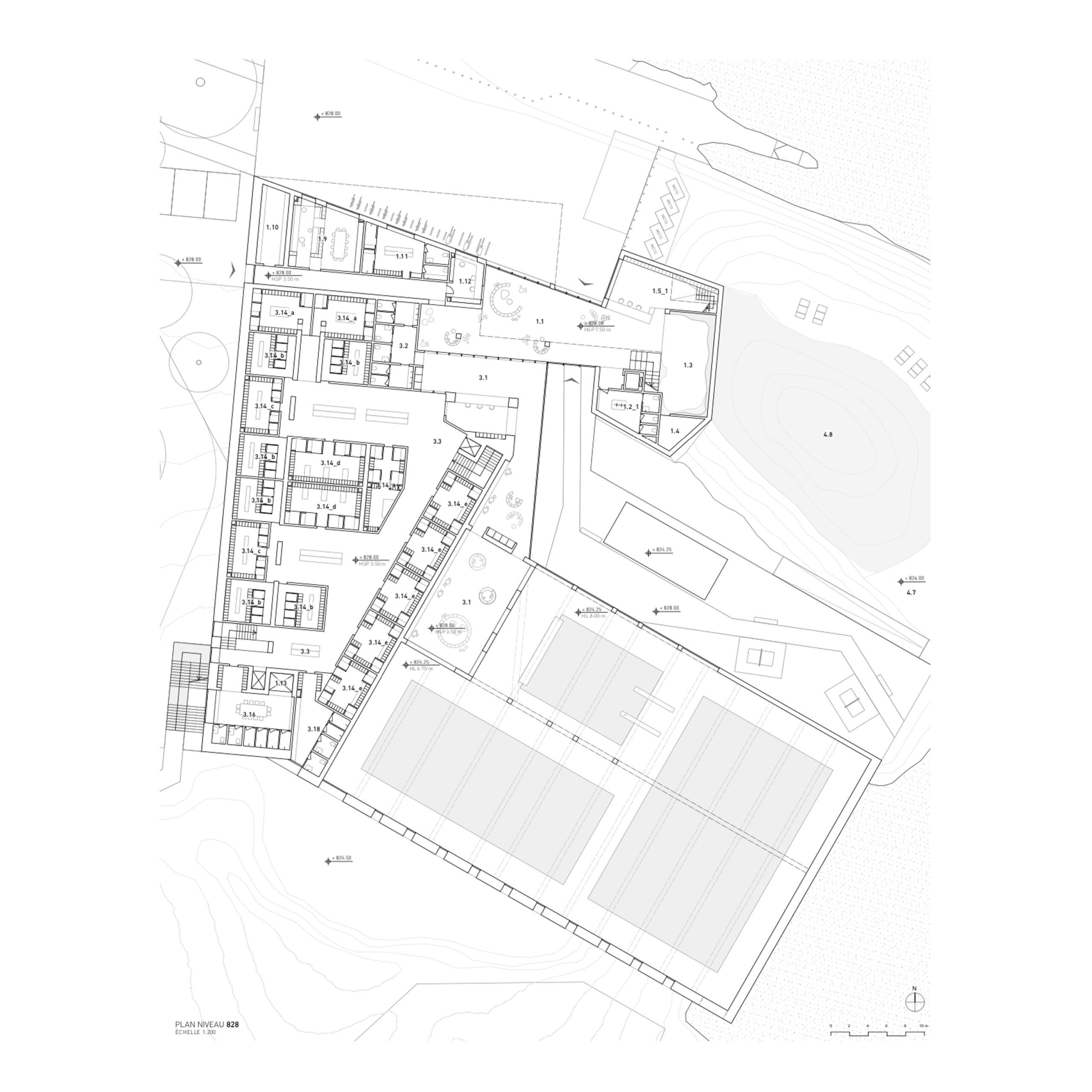 Il nuovo complesso sportivo formato dalla tripla palestra polifunzionale e dal centro notatorio da realizzare a Chatel Saint Denis, piccolo villaggio elvetico nel Canton Friburgo, diviene l’occasione per una nuova visione urbanistica. La proposta progettuale presenta non solo un nuovo edificio ma anche lo sviluppo di uno spazio pubblico che trae origine dal disegno del nuovo centro sportivo per configurare un inserimento pienamente urabano.
