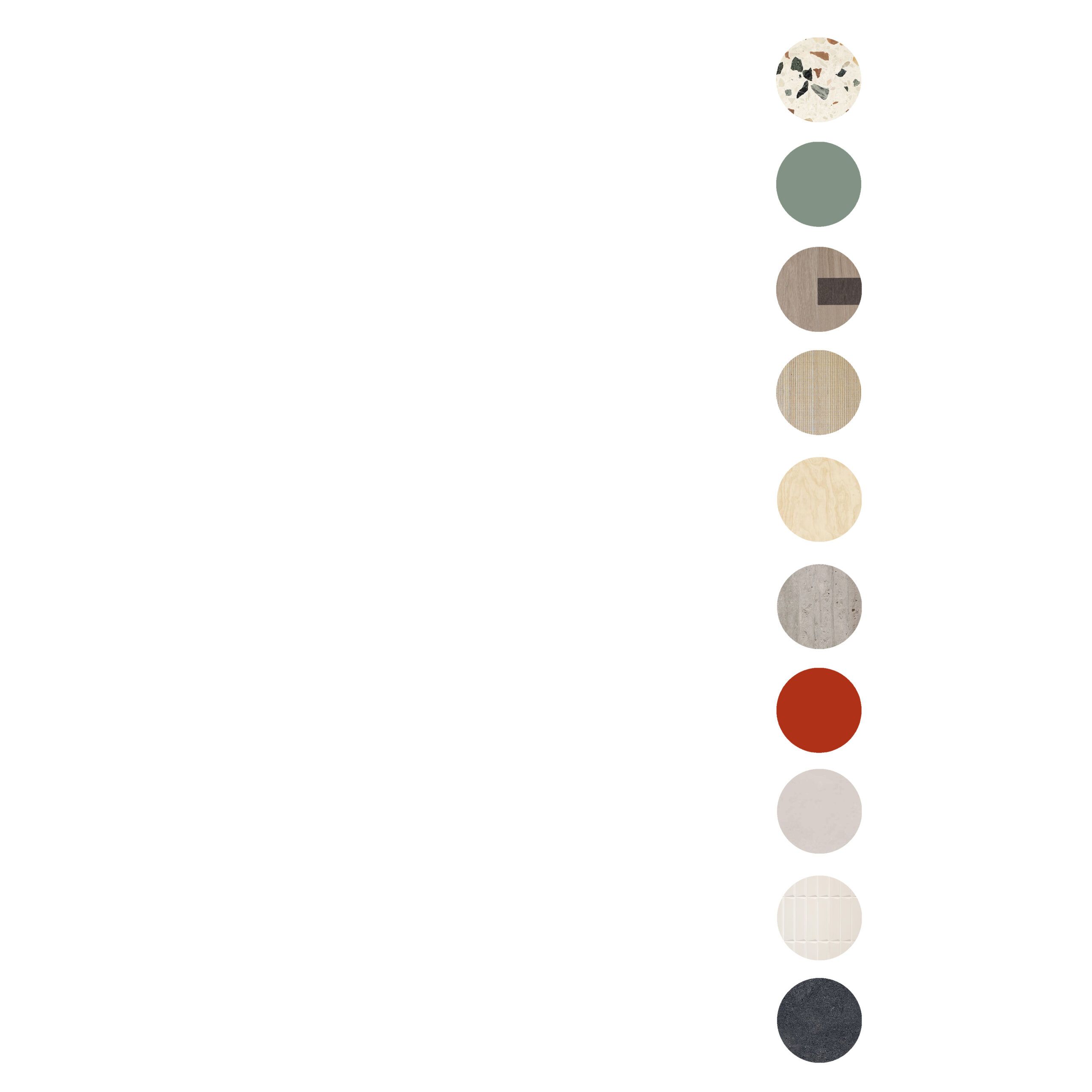 Gli arredi proposti sono minimali, semplici, sostenibili, flessibili e caratterizzati dal color rosso, la scelta del colore è mutuata anche dal Piano del Colore del Comune in cui il rosso viene individuato come vettore per evidenziare i tratti salienti.