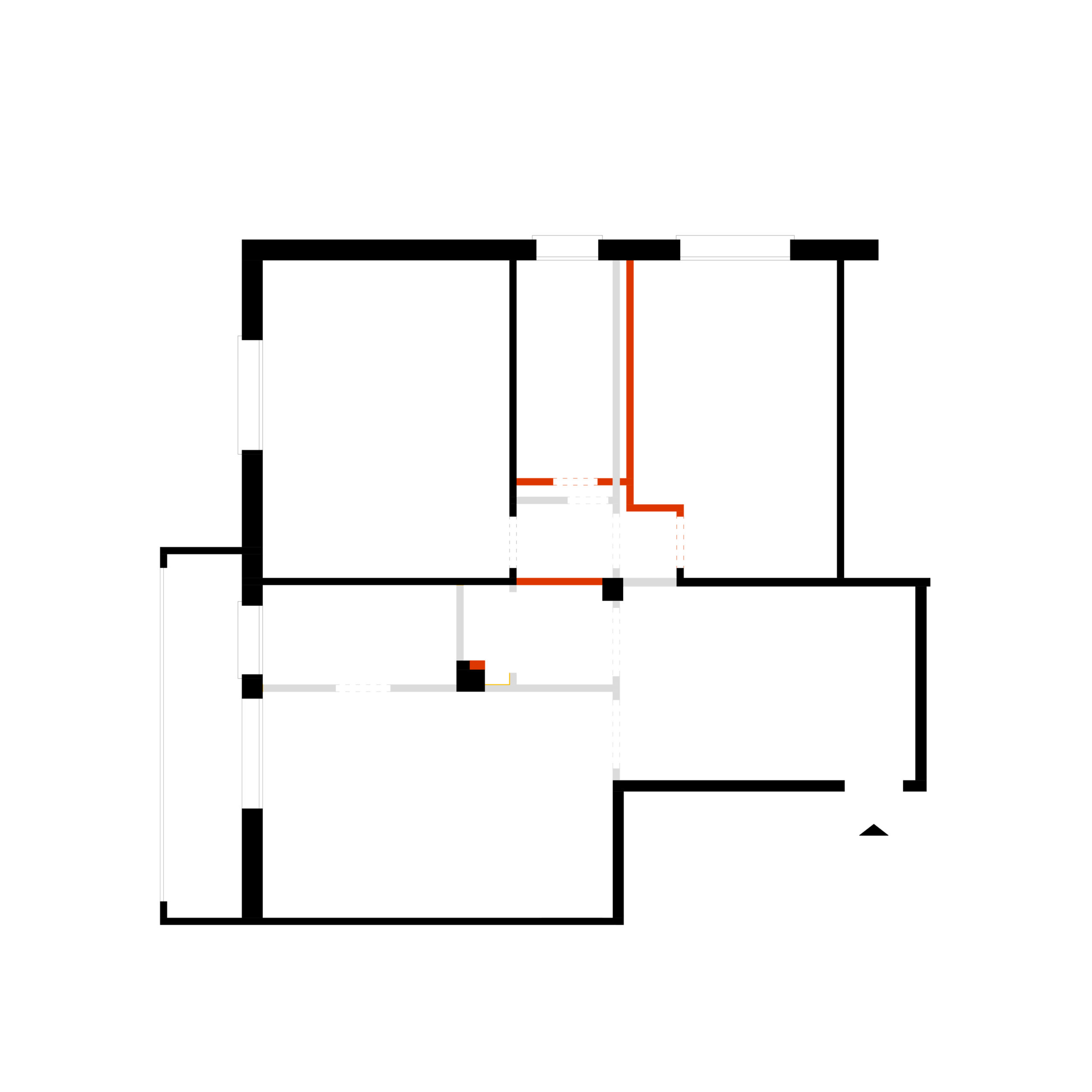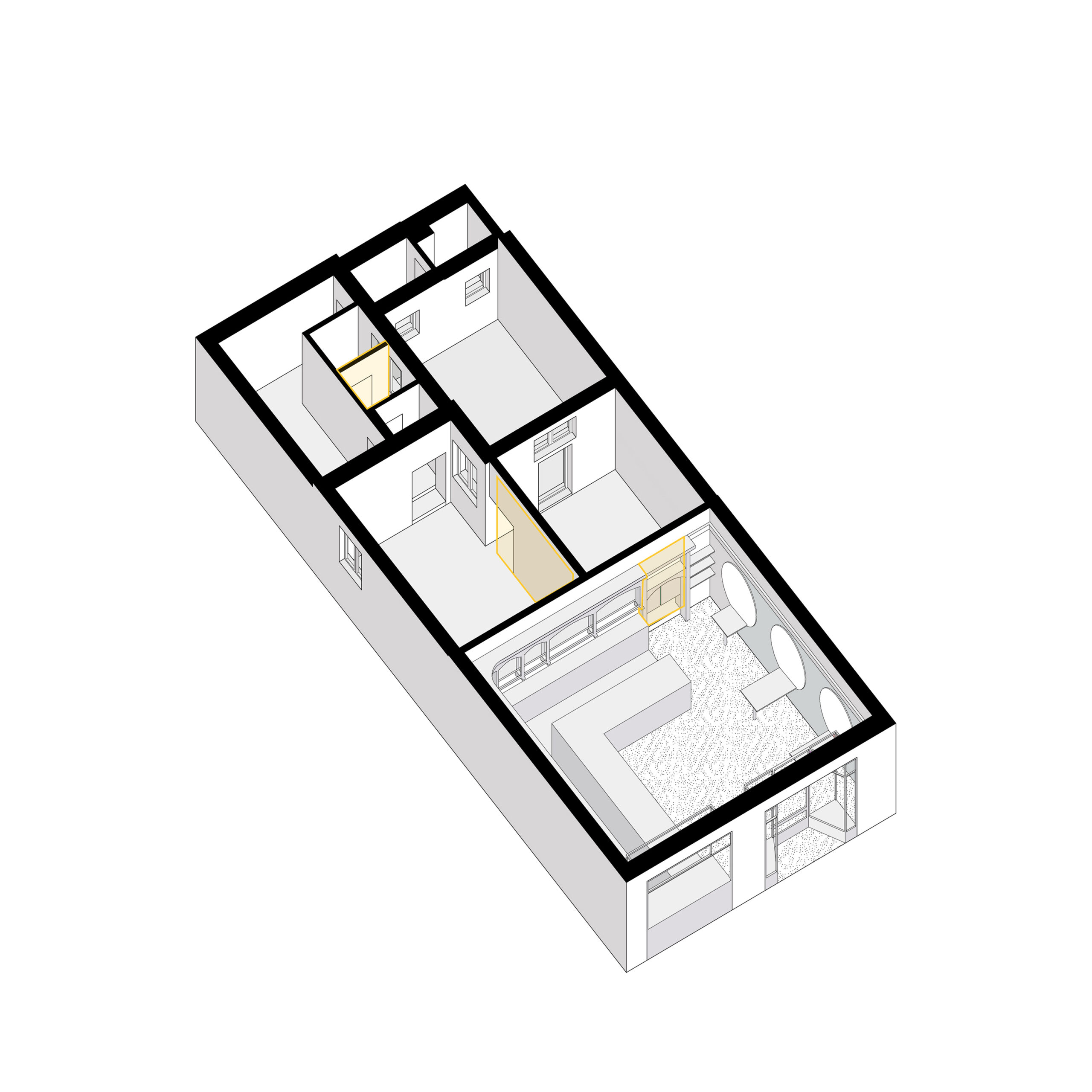L’obiettivo era ottenere una camera in più rispetto al layout dello stato di fatto (infatti l’acquisto di una nuova casa era dovuto a questo, in seguito alla nascita di nostra figlia Dalia). Per far ciò abbiamo adottato due scelte peculiari: