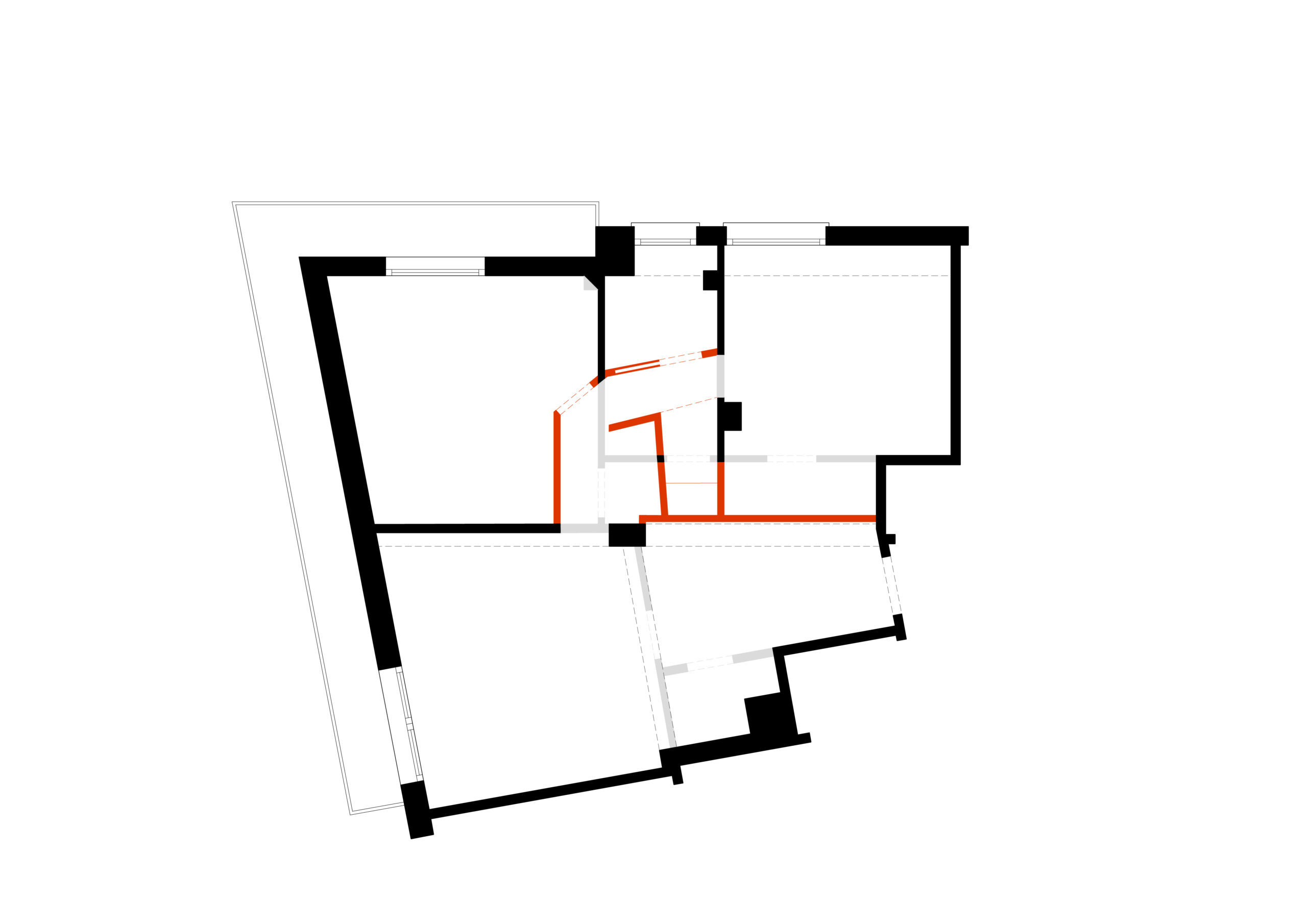 A seguito di un processo di eliminazione degli orpelli che indebolivano la forza visuale delle aperture, l’esistente diviene elemento neutrale e fondale di rara bellezza su cui andare ad inserire incursioni percettive minimali ed accurate che divengono il giusto cannocchiale per gli scorci esterni.
